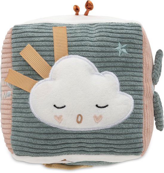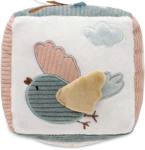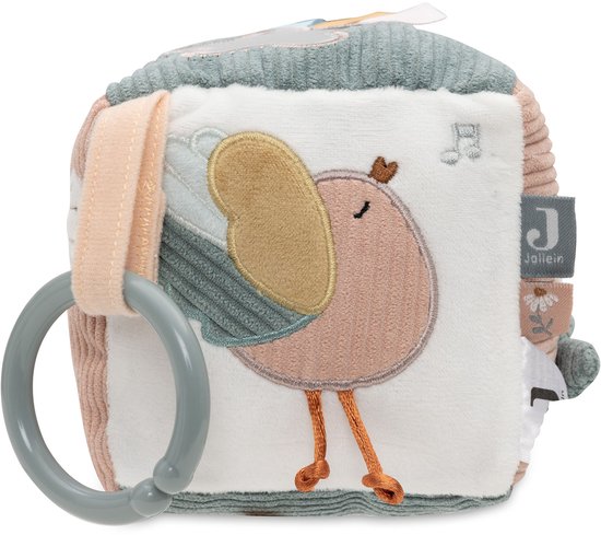 Deze vrolijke activiteitenkubus in het Lovely Birds-thema zit vol met kleurrijke opdrukjes, schattige printjes, leuke tags en mooie borduursels! Je vindt er vrolijke vogeltjes, fluffy wolkjes, bloemen, een ster, en zelfs fairy Amy komt voorbij! De vogels hebben schattige vleugeltjes, en de koordjes zijn prachtig geborduurd, zodat je kleintje eindeloos kan spelen en ontdekken. Deze mega leuke activiteitenkubus prikkelt de zintuigen van je kleintje en zorgt voor uren speelplezier!