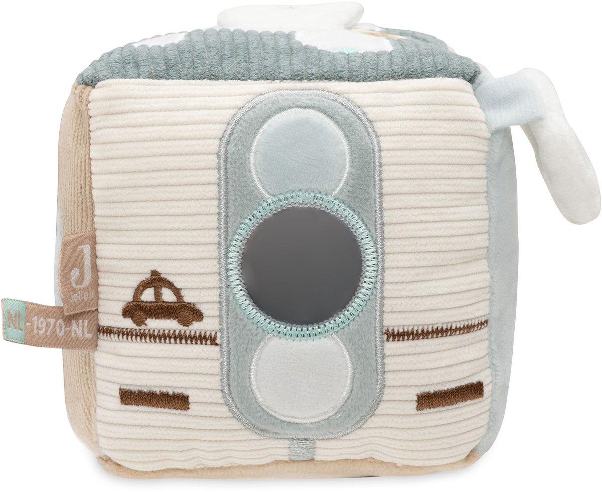 Deze avontuurlijke activiteitenkubus in het “On The Go”-thema is perfect voor nieuwsgierige kleintjes! In de frisse kleuren Sea Green en Biscuit biedt deze kubus een wereld vol ontdekkingen. Je vindt er een schattige sleutel met een knispergeluid, een tankpaal opdruk en een verkeerslicht met een spiegeltje, zodat je kleintje zich kan verwonderen. Daarnaast zijn er nog veel meer leuke elementen om mee te spelen! Deze activiteitenkubus stimuleert de zintuigen en zorgt voor eindeloos speelplezier!