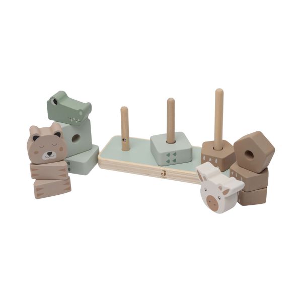 Tijd voor je kleintje om lekker te bouwen en te spelen! Hoe kan dat beter met een houten stacking tower van 3 verschillende jungle dieren. Deze torentjes bestaan uit verschillende blokken en kleuren en helpen je kleintje deze te onderscheiden. Hierom is het spelen met houten speelgoed ook enorm goed voor het ontwikkelen van de fijne motoriek. Ons houten speelgoed is bovendien duurzaam, en gemaakt van FSC 100% gecertificeerd hout. De Giraffe in caramel kleur, de Krokodil in Ash green en de Cheetah in biscuit kleur maken deze stacking tower een feestje om te zien!